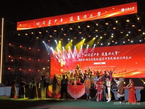 当日15时起,师生们首先投入现场展示体验活动。19所高校的24个展位按“56”字样排布,中南大学、湖南大学等高校通过“静态展陈+动态演绎+交流互动”模式,全方位呈现铸牢中华民族共同体意识相关工作成果。18时30分,文艺展演准时拉开帷幕。14个节目分“锦绣山河・美美与共”“石榴花开・团结礼赞”“同心向党・万疆同辉”三个篇章依次上演,中南大学《九州同》的悠扬民乐、湖南工业大学《籽籽同心》的动人歌舞、湘潭大学《何以中国,同心筑梦》的深情朗诵,以丰富形式展现各民族文化交融的生动图景,让师生们沉浸式感受多元文化魅力。