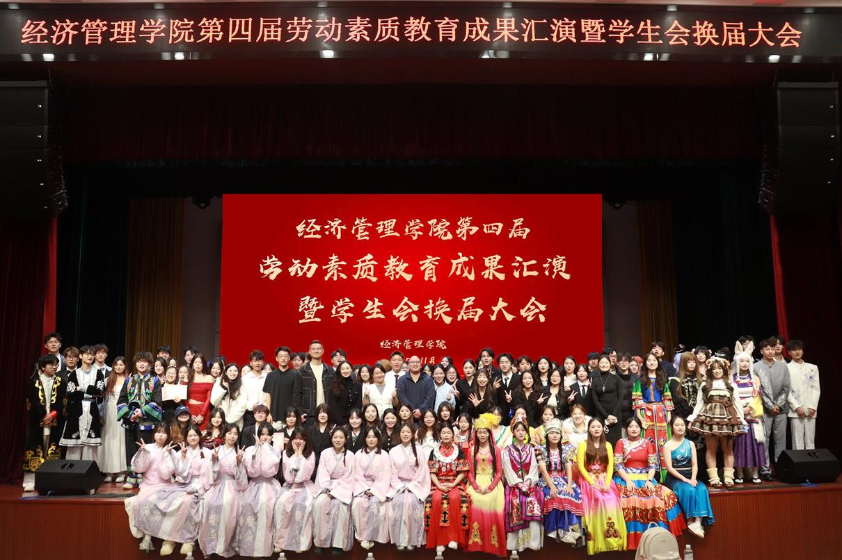 冬日蕴希望,奋斗正当时。为深入落实立德树人根本任务,扎实推进“三全育人”综合改革,11月17日晚,经济管理学院在学校礼堂举办第四届劳动素质教育成果汇演暨第六届学生会换届大会。学院负责人、相关部门负责人、学院全体辅导员及学生代表共同参加,见证了一场融思想性、艺术性与教育性于一体的青春盛会。