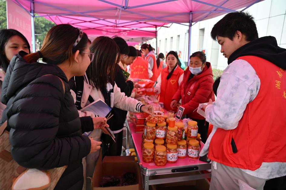 此次展销会共吸引15家企业参展,推出73类产品,现场销售额达5万余元。“才开张不到一小时,带来的几大箱橘子就快见底了。”一位展位负责人一边忙着给顾客打包蜜橘,一边笑容满面地说,“直营店给了我们一个稳定可靠的展示窗口,让更多师生认识并喜欢上我们洞口的味道。相信有了学校的平台和师生的支持,我们的优质农产品一定能走得更远!”