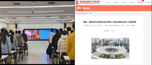 活动还直播观看了第十届全国学生“学宪法 讲宪法”活动全国总决赛获奖名单的公布及部分优秀作品的展演,由我校拍摄录制的《宪法伴我们成长》歌曲传唱视频,被教育部全国青少年普法网收录并推介,成为本次活动的亮点之一。