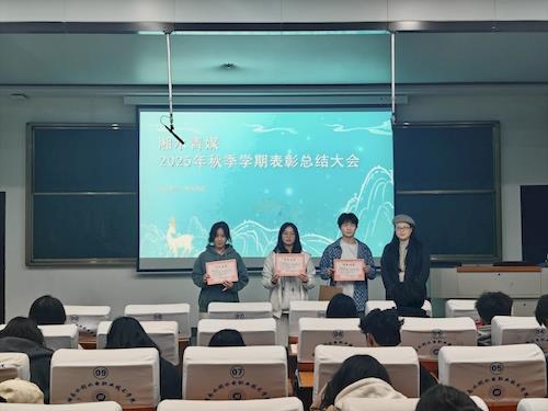 12月15日,湘水青媒近百名师生成员在图书馆实训综合楼113教室召开2025年秋季学期总结表彰大会。大会全面复盘学期工作成效,表彰先进典型,部署后续任务,凝聚全社力量迈向新征程。