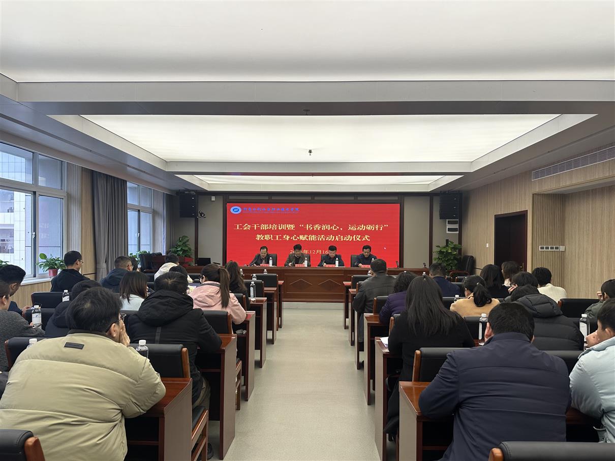 1216日,工会干部培训暨书香润心,运动励行教职工身心赋能活动启动仪式在校举行。教育工会高教部部长龙培出席并作专题授课,党委书记常世名出席并致辞,党委副书记、工会主席李付亮主持活动。全体专兼职工会干部齐聚一堂,共同参与了一场聚焦履职”“赋能提升之旅