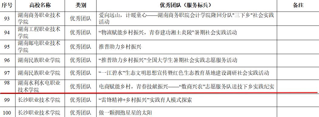 近日,湖南省教育厅公布了2025年“小我融入大我,青春献给祖国”高校师生主题社会实践优秀团队名单。我校“数商兴农”志愿服务队凭借其在服务乡村振兴领域的扎实工作和创新成果,成功入选“优秀团队(服务标兵)”,全省仅100支团队获此殊荣。