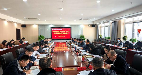 12月19日下午,学校党委理论学习中心组(扩大)在图书馆实训综合楼529会议室开展2025年第十二次集中学习,学校党委理论学习中心组成员、各部门党政负责人参加,学习会议由党委书记常世名主持。