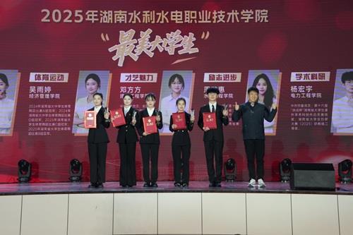 晚会开篇,“最美大学生”颁奖仪式温情启幕。朗诵《水润青春,薪火报国》与情景剧《最美大学生》生动再现了获奖学子的青春风采。廖瑞庭、张博宁、杨宏宇等10名“最美大学生”及10名提名奖获得者依次登台领奖。他们中既有科研攻关的创新能手、技能赛场的拼搏强者,也有扎根服务的志愿先锋、逆境奋进的励志典型,以奋斗诠释“上善若水、求真致远”的校训精神,为全校学子树立了“学有榜样、行有示范”的标杆。