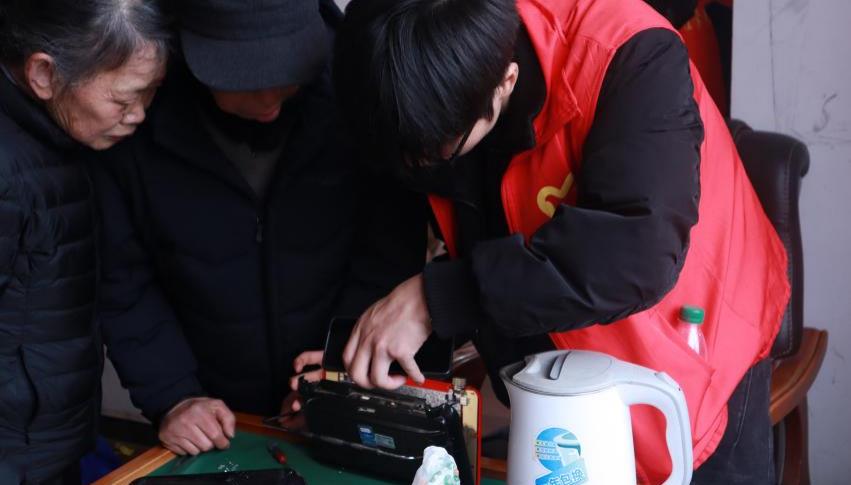 活动现场,维修电工协会的成员们耐心为居民免费检修台灯、电热水壶等小家电,认真排查线路接触不良、部件老化等问题,精准判断故障、规范维修操作。大家运用专业知识,细心拆解、认真调试、更换损坏元件,让一件件故障电器恢复正常使用,用扎实技能解决居民日常用电难题,把温暖、实用、贴心的电力服务送到群众身边。