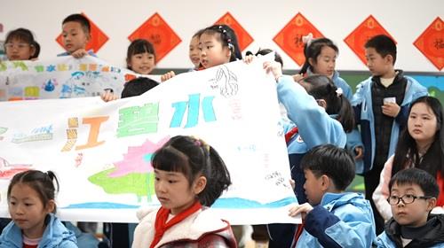 随后的共绘“护水画卷”环节,我校“菁彩青年链未来”志愿服务队及“玩”美生活美育工作室师生带领孩子们,以“守护好一江碧水”为主题挥毫创作。孩子们用五彩画笔勾勒生态美景,将节水愿景融入笔墨,在审美与实践中感受水之美、筑牢护水意识。